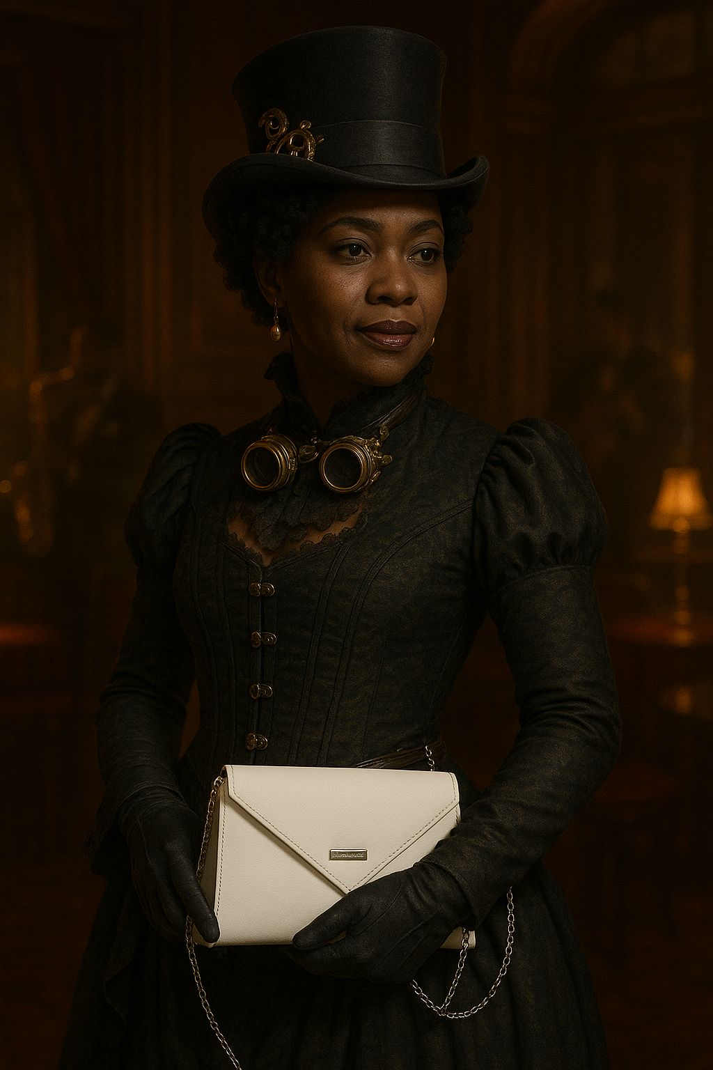 - Gunmetal/pewter hardware